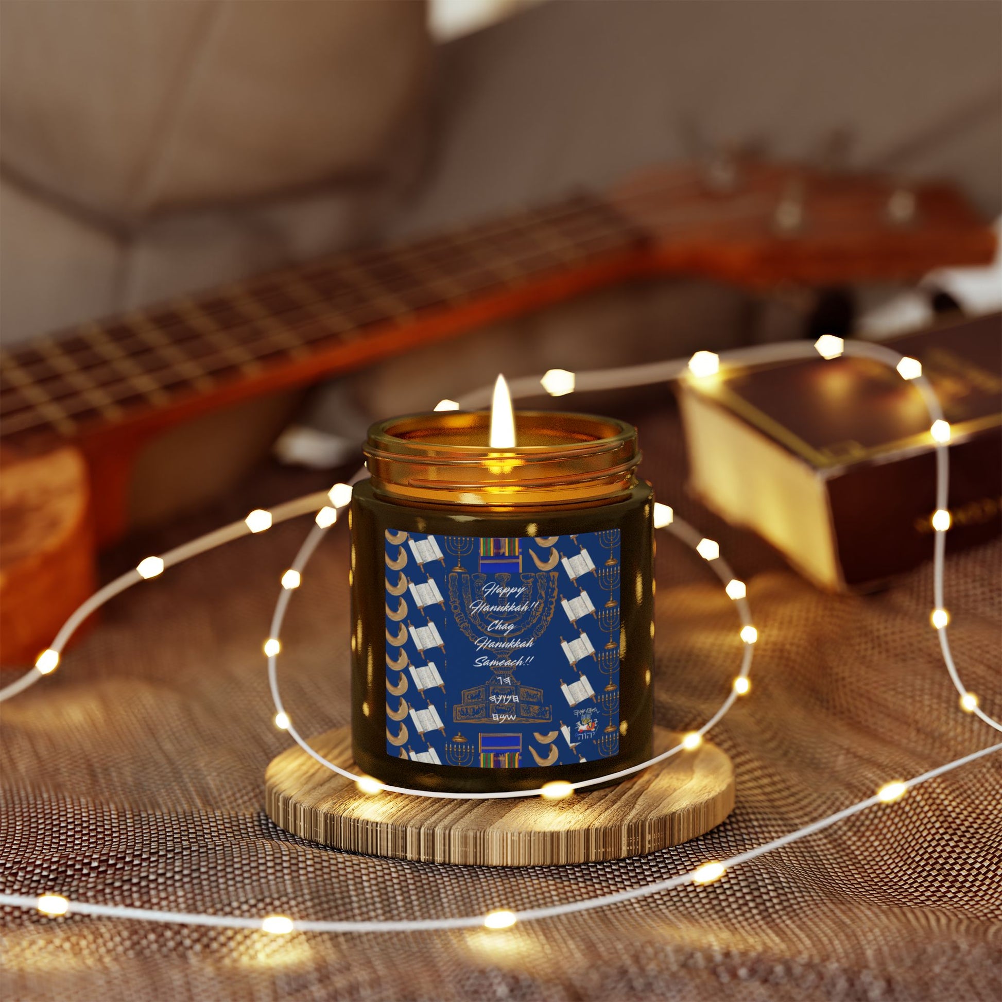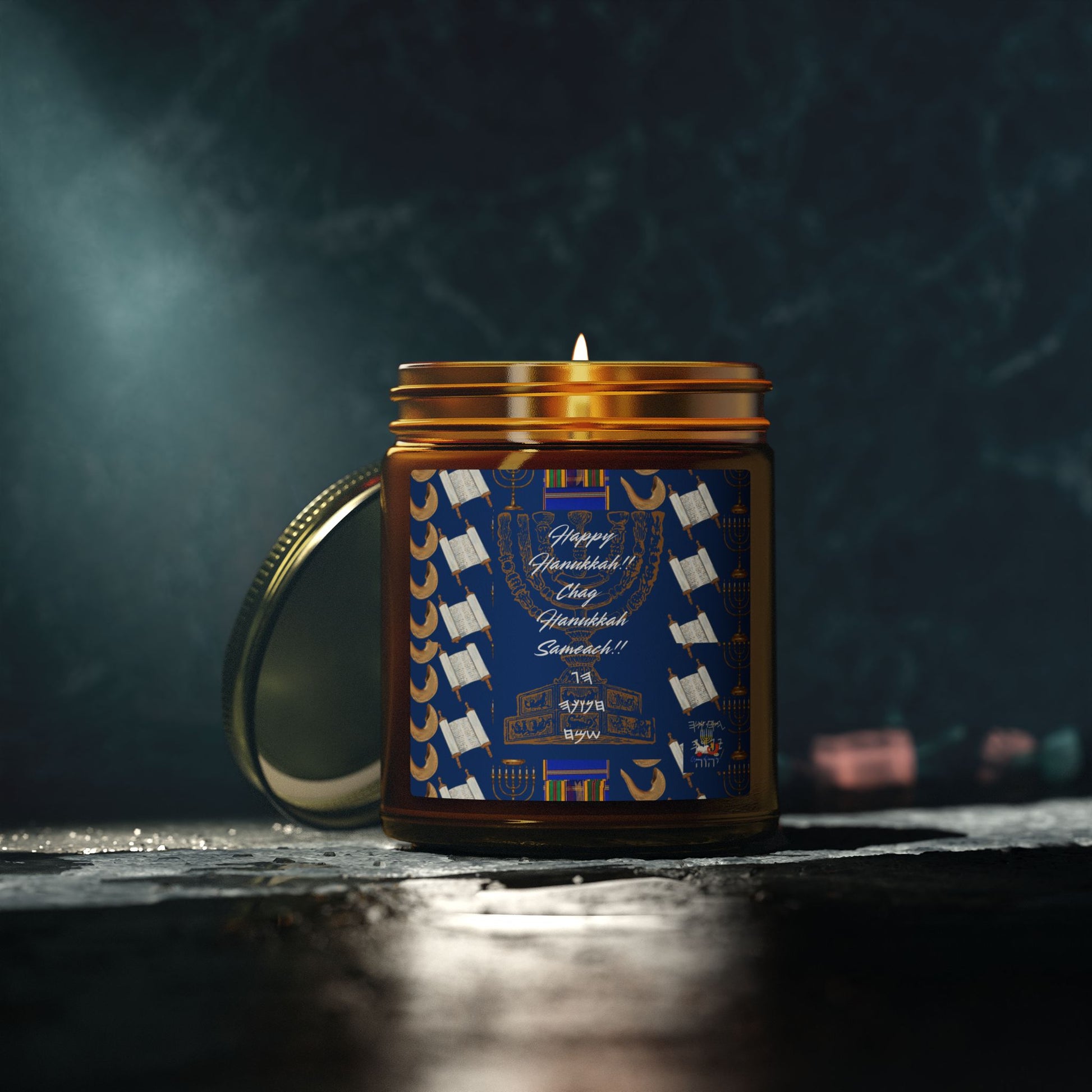 Happy Hanukkah Coconut Apricot Wax Candle (4oz, 9oz)